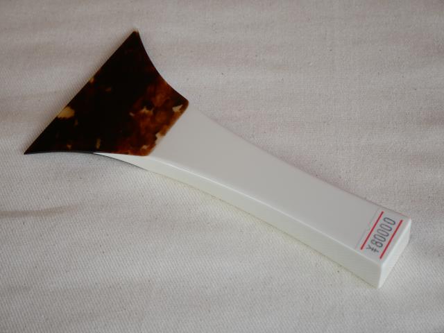 | 状態 | 新品。べっ甲が綺麗な津軽べっ甲撥です。バランスも良く重さも141gで軽からず重からずで丁度良いかと思います。見るからに弾きやすそうな感じが致します。手元は手が痛くならない様にほど良く面取をしてあります。撥先は普通でややしなります。 |
