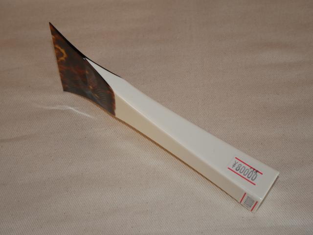 | 状態 | 新品。手元面取済みのプラ台津軽べっ甲撥です。平均的な重さの138gなので重すぎず軽すぎずで丁度良い感じです。撥先のしなりは普通でややしなる仕上がりとなっています。 |