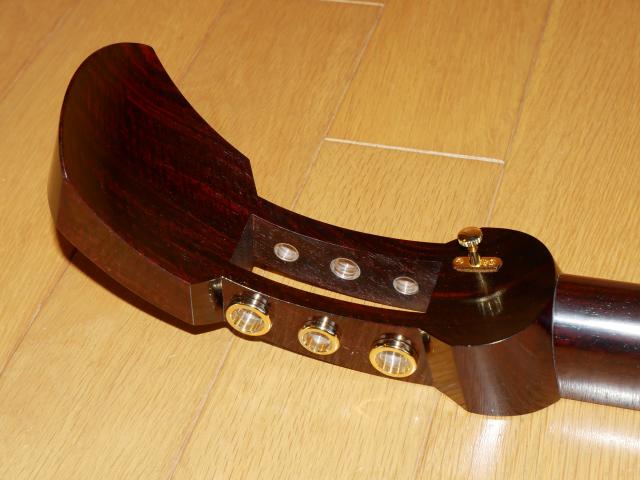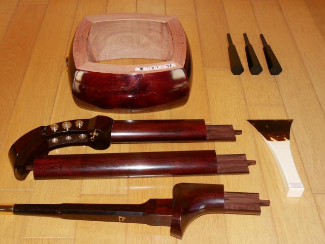 「中古三味線は全て完全修理済です」の修理内容は、胴磨き直し(留がずれていれば胴付直し)をして糸巻金具、東さわり、上駒、りんどうの金具関係を全てはずし、棹つなぎ直しのあと棹全体の表面を削り砥石で磨きます。