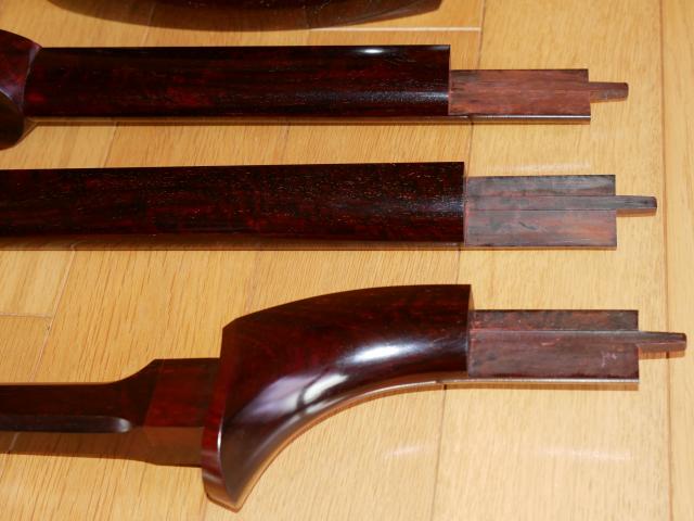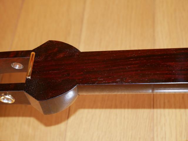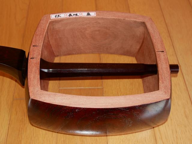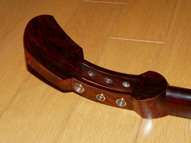 「中古三味線は全て完全修理済です」の修理内容は、胴磨き直し(留がずれていれば胴付直し)をして糸巻金具、東さわり、上駒、りんどうの金具関係を全てはずし、棹つなぎ直しのあと棹全体の表面を削り砥石で磨きます。