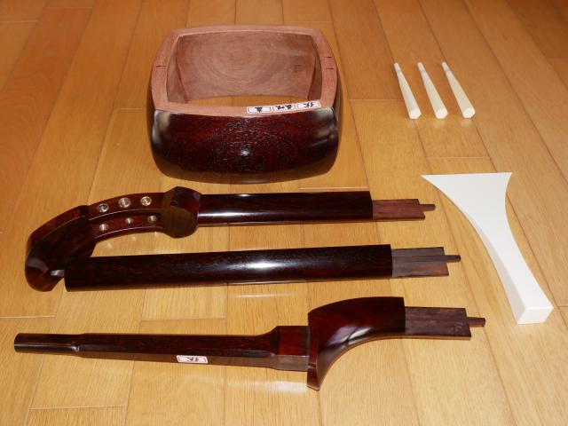 さらに胴仕込直し(は直し)、中木がずれていれば中木付直し、そして金具関係を全て新しい金具に取換えて新しい糸巻を仕込み、ご注文後に両面の皮を張り、新品三味線に限りなく近い仕上がりとなります。