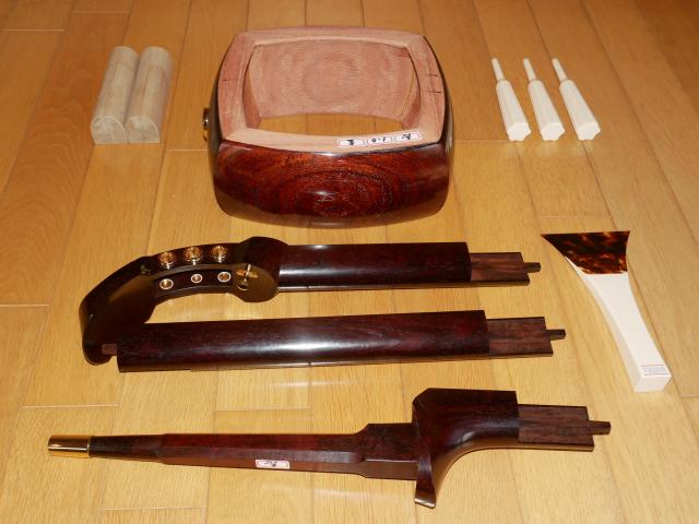 さらに胴仕込直し(は直し)、中木がずれていれば中木付直し、そして金具関係を全て新しい金具に取換えて新しい糸巻を仕込み、ご注文後に両面の皮を張り、新品三味線に限りなく近い仕上がりとなります。