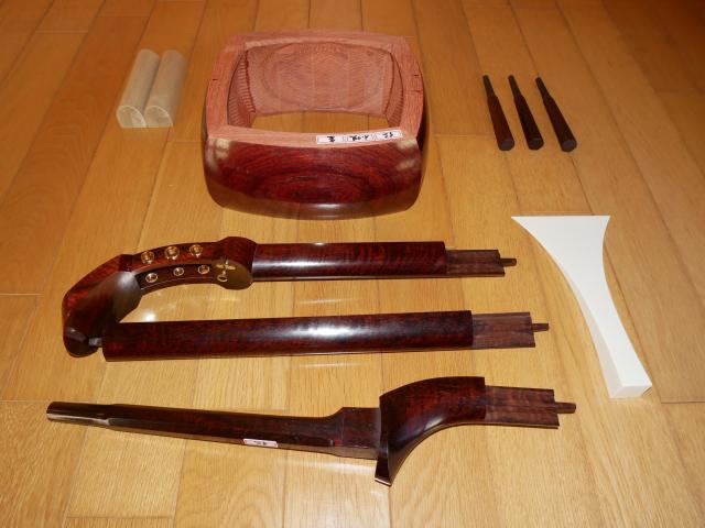 さらに胴仕込直し(は直し)、中木がずれていれば中木付直し、そして金具関係を全て新しい金具に取換えて新しい糸巻を仕込み、ご注文後に両面の皮を張り、新品三味線に限りなく近い仕上がりとなります。