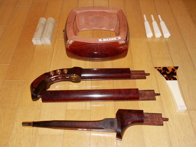 さらに胴仕込直し(は直し)、中木がずれていれば中木付直し、そして金具関係を全て新しい金具に取換えて新しい糸巻を仕込み、ご注文後に両面の皮を張り、新品三味線に限りなく近い仕上がりとなります。