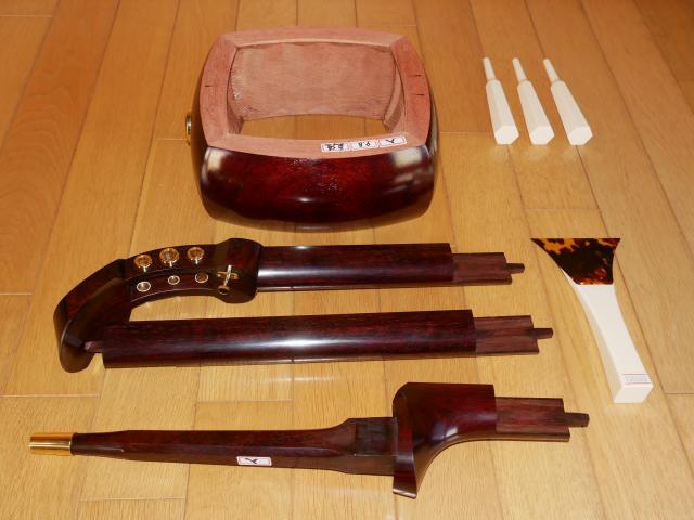 さらに胴仕込直し(は直し)、中木がずれていれば中木付直し、そして金具関係を全て新しい金具に取換えて新しい糸巻を仕込み、ご注文後に両面の皮を張り、新品三味線に限りなく近い仕上がりとなります。