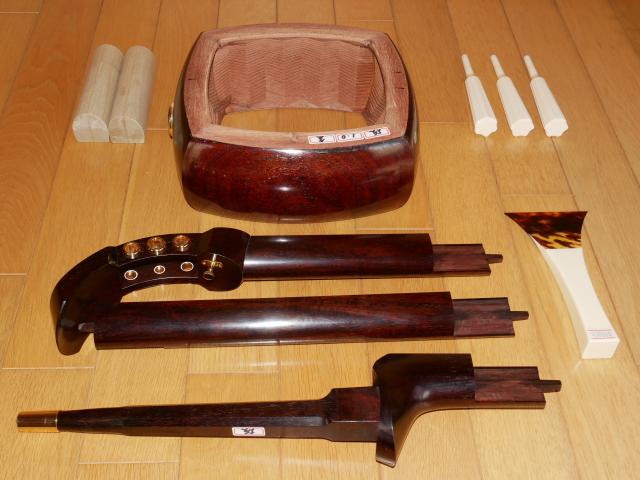 さらに胴仕込直し(は直し)、中木がずれていれば中木付直し、そして金具関係を全て新しい金具に取換えて新しい糸巻を仕込み、ご注文後に両面の皮を張り、新品三味線に限りなく近い仕上がりとなります。